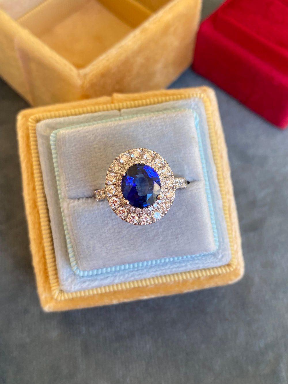 3.33 CTW Blue Ceylon Sapphire and Natural Diamond Halo Ring in Platinum -