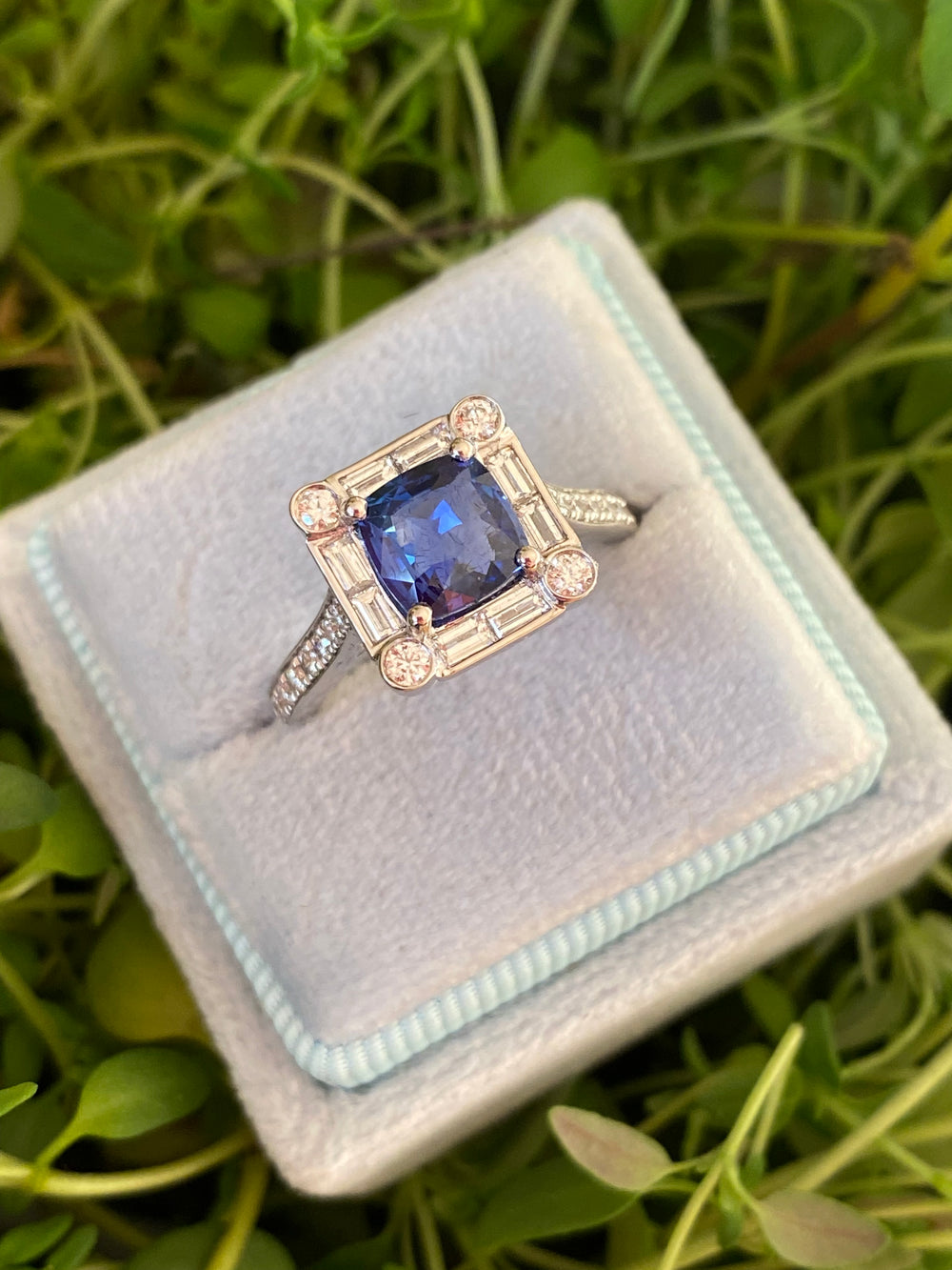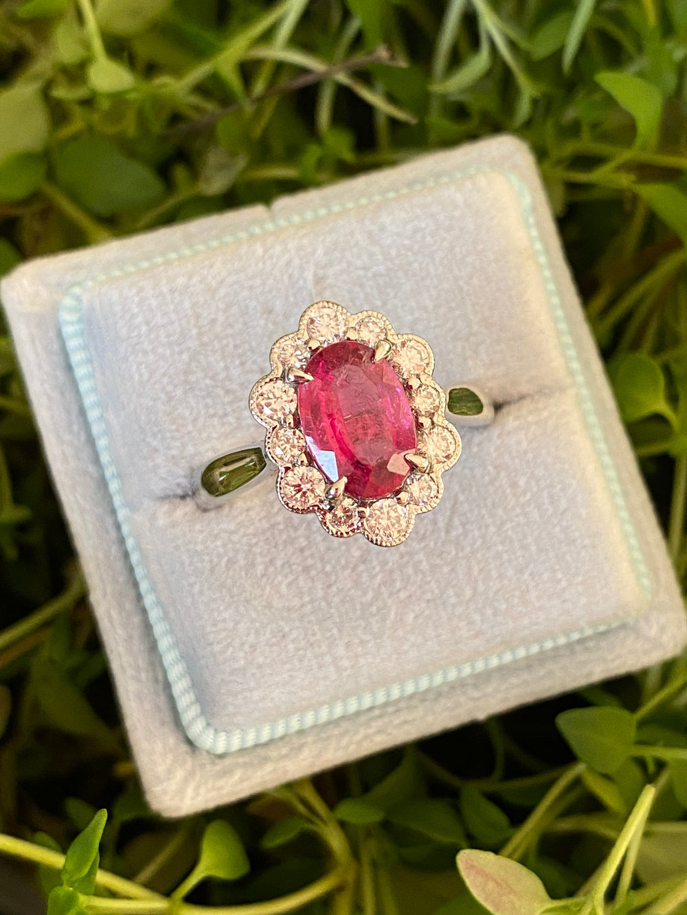 1.58 Carat Cushion Cut Pink Tourmaline and Natural Diamond Ring in Platinum -