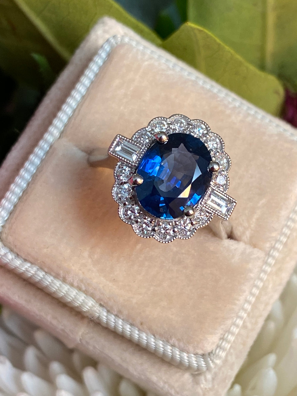 2.79 Carat Blue Ceylon Sapphire and 0.56ctw Natural Diamond Halo Ring in Platinum -