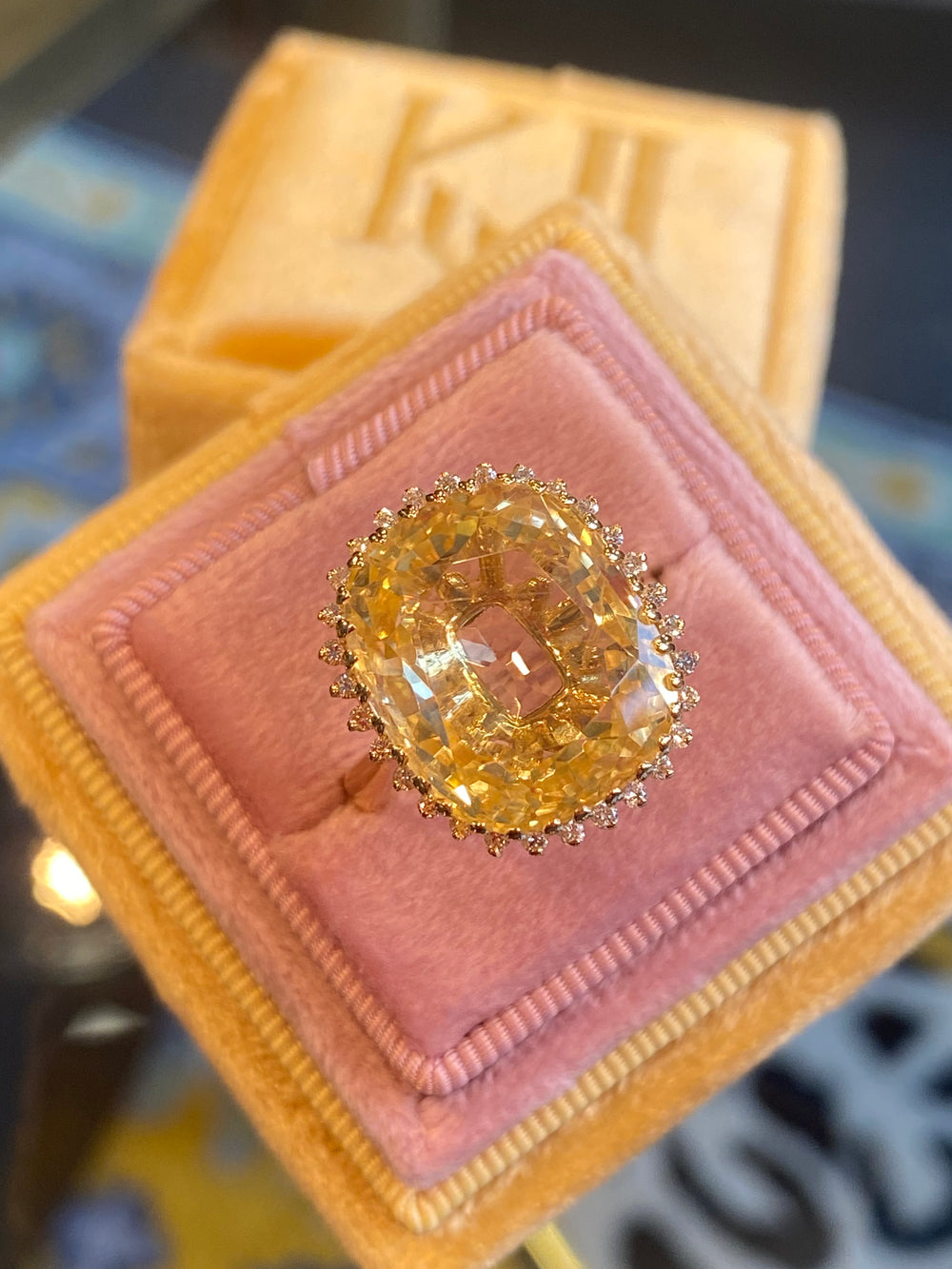 Masterpiece 19.23 Carat Certified Antique Unheated Yellow Sapphire and Diamond Ring -