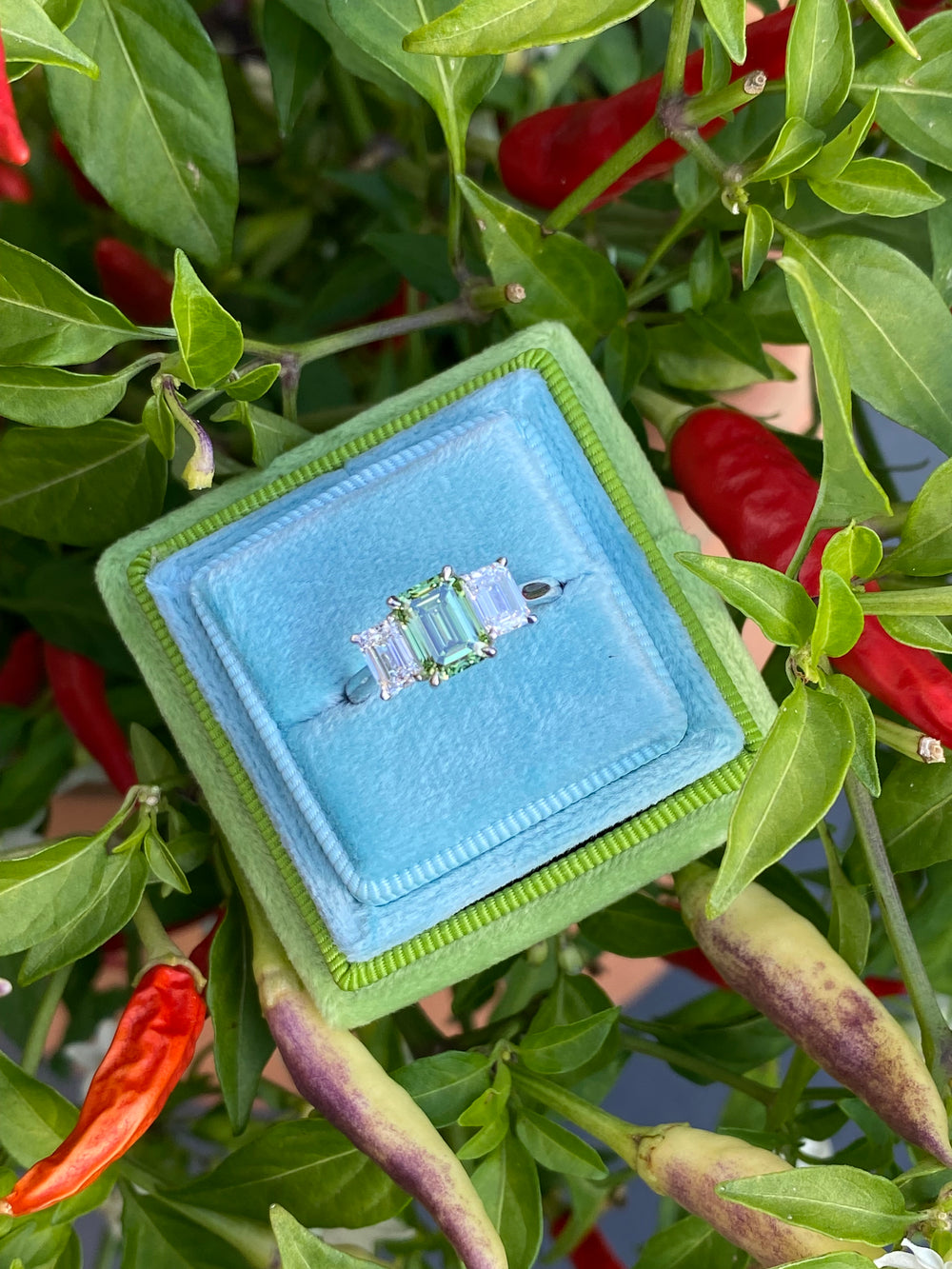 2.61 CTW Fancy Green Lab Grown Diamond Graduated Three Stone Ring in Platinum -