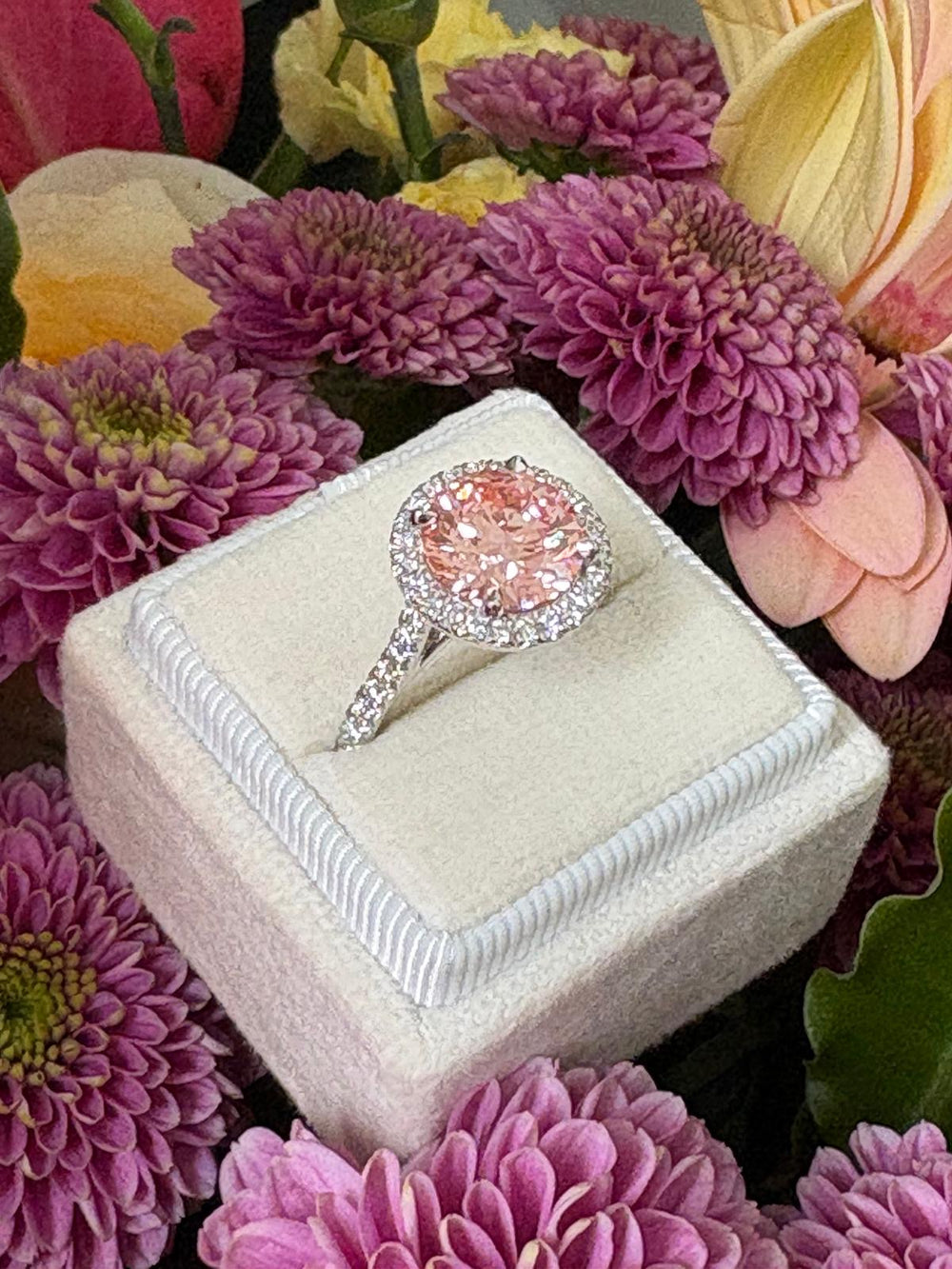 3.52 CTW Fancy Pink Lab Grown Diamond Halo Ring in Platinum -