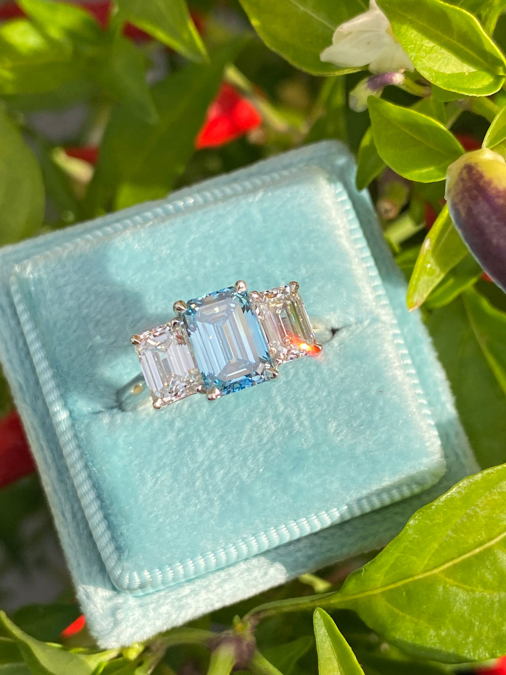 3.15 CTW Fancy Blue Lab Grown Diamond Graduated Three Stone Ring in Platinum -