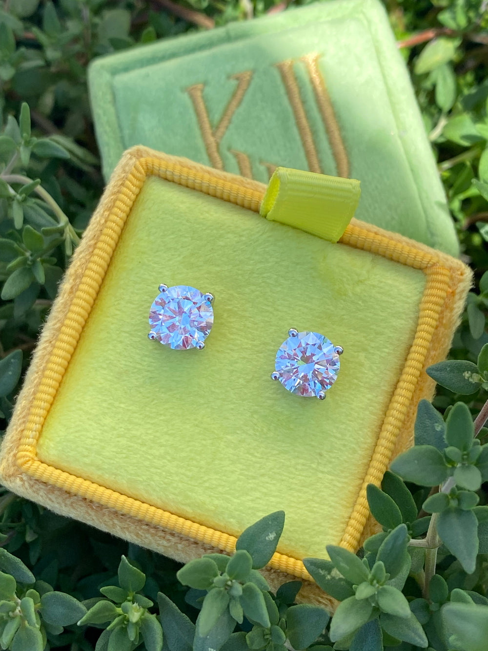 4.00 CTW + Lab Grown Diamond Solitaire Stud Earrings, at Least F Colour / VVS Clarity -
